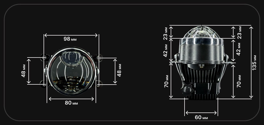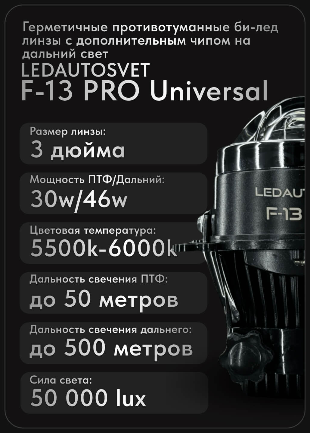 Герметичные противотуманные BI-Led ПТФ LEDAUTOSVET F13 PRO Universal 52w
